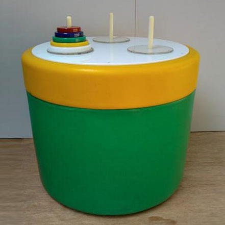展台上设有三根立柱,并在某一根立柱上配有大小不一依次排列的圆片。